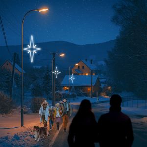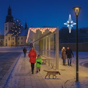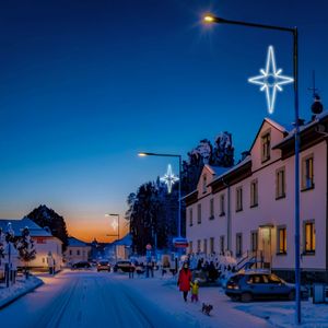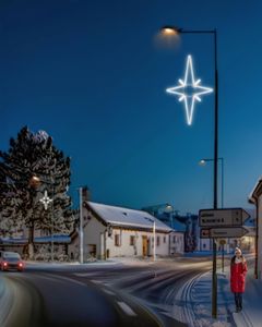 Tato velká světelná hvězda patří mezi obecné symboly Vánoc. S láskou a péčí ji pro Vás vyrábíme z lehkých a velmi kvalitních materiálů. S našimi neuvěřitelně úspornými a třpytivě zářivými LED světýlky se může stát obdivovaným diamantem Vaší vánoční výzdoby. Je určena zejména pro výzdobu vyšších stožárů, širších ulic, fasád větších objektů…