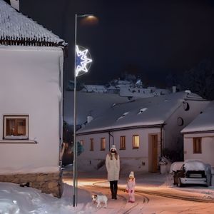 Tato malá světelná ½ hvězda patří mezi obecné symboly Vánoc. S láskou a péčí ji pro Vás vyrábíme z lehkých a velmi kvalitních materiálů. S našimi neuvěřitelně úspornými a třpytivě zářivými LED světýlky se může stát obdivovaným diamantem Vaší vánoční výzdoby. Je určena zejména pro výzdobu středních a nižších stožárů, menších ulic, fasád menších objektů…