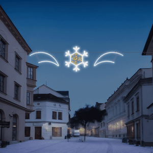 Tato malá světelná vločka obohacená o výplet složený z drobných LED světýlek patří mezi obecné symboly Vánoc. S láskou a péčí ji pro Vás vyrábíme z lehkých a velmi kvalitních materiálů. S našimi neuvěřitelně úspornými a třpytivě zářivými LED světýlky se může stát obdivovaným diamantem Vaší vánoční výzdoby. Je určena zejména pro výzdobu středních a nižších stožárů, menších ulic, fasád menších objektů…