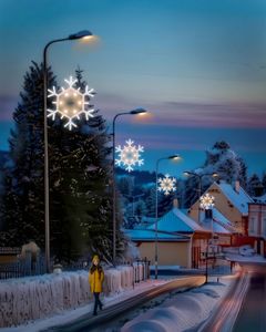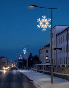 Tato velká světelná vločka obohacená o další větší, velmi dekorativní světlené zdroje, u kterých si můžete zvolit barvu, patří mezi obecné symboly Vánoc. S láskou a péčí ji pro Vás vyrábíme z lehkých a velmi kvalitních materiálů. S našimi neuvěřitelně úspornými a třpytivě zářivými LED světýlky se může stát obdivovaným diamantem Vaší vánoční výzdoby. Je určena zejména pro výzdobu vyšších stožárů, širších ulic, fasád větších objektů…