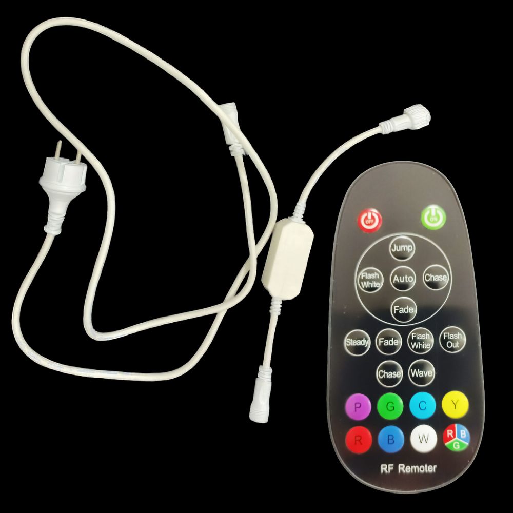 Zdrojový kabel dlouhý 150 cm pro LED RGB řetězy 230 V s kontrolerem a dálkovým ovladačem. Na kontroler lze zapojit 100 až 1000 LED.