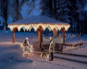 Velmi úsporné světelné LED rampouchy v různých barvách dokážou například na nejrůznějších budovách navodit krásnou atmosféru.