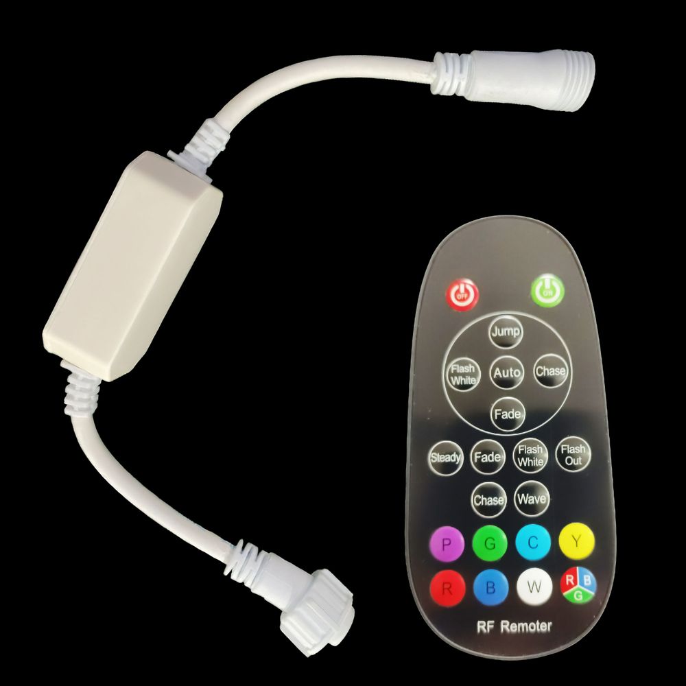 Kontroler pro LED RGB řetězy 24 V s dálkovým ovladačem. Na kontroler lze zapojit 100 až 2000 LED.
